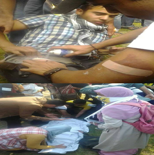 أطلقت قوات الانقلاب الرصاص الحي عشوائيًّا والخرطوش والغاز المسيل للدموع على الطلاب العزل؛ مما نتج عنه إصابة العشرات.