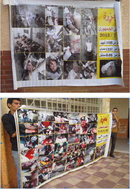 نظَّم ائتلاف طلاب ضد الانقلاب بجامعة دمياط، ظهر اليوم، معرضًا فنيًّا بكلية التجارة بدمياط الجديدة، عرضوا خلاله صور الشهداء الذين سقطوا على أيدي ميلشيات الانقلاب العسكري.