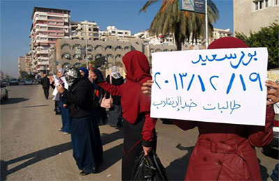 نظمت حركة طلاب ضد الانقلاب ببورسعيد سلسلة بشرية اليوم أمام كلية الآداب والتربية بشارع محمد علي بحي العرب رفضًا للانقلاب العسكري ومطالبين بعودة الشرعية ومنددين باقتحام قوات أمن الانقلاب للجامعات ومقتل واعتقال الطلاب .