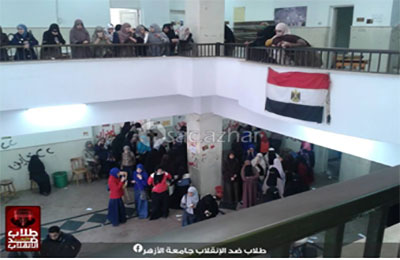 أفادت الأنباء الواردة من الجامعة بأن قوات أمن الانقلاب تحتجز عددًا من الطالبات العزل داخل المبنى المضربات عن دخول الامتحانات.
