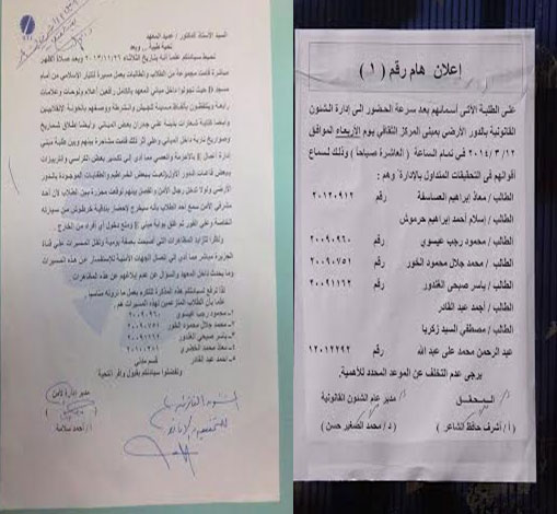 استنكرت حركة طلاب ضد الانقلاب بالمعهد التكنولوجي العالي بالعاشر من رمضان في محافظة الشرقية إحالة عدد من زملائهم إلي التحقيق وتلفيق التهم إليهم؛ وذلك بسبب مطالبتهم بالإفراج عن زملائهم المعتقلين والقصاص للشهداء.