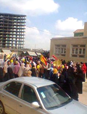 نظم طالبات كلية الدراسات الإسلامية بنات بكفر الشيخ مظاهرة داخل أروقة الكلية في إطار دعوة التحالف للتظاهر ضمن فعاليات "الشارع لنا معًا للخلاص".