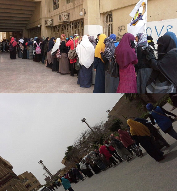 وارتدى الطلاب طراطير يطوفون بها الجامعة، رافعين شارة رابعة.