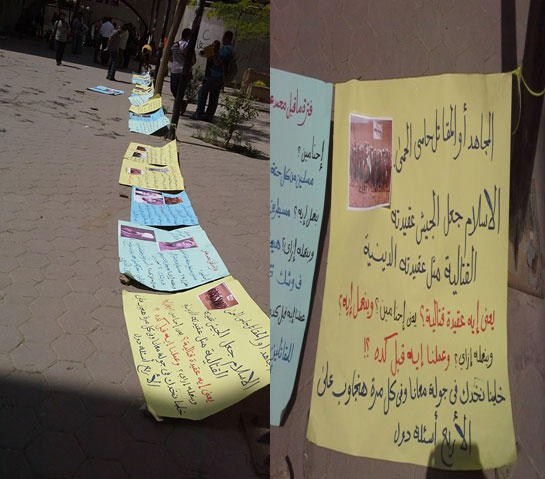 نظم طلاب أحرار علوم ضد الانقلاب بجامعة حلوان معرضًا بعنوان "عقيدة الجيش من الجهادية لكشوف العذرية"، وتم فيه عرض تاريخ الجيش منذ عهد صلاح الدين الأيوبي إلى يومنا هذا.