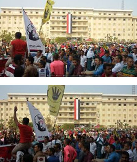 رفع الطلاب المتظاهرون رايات رابعه العدويه وأكدوا على سلمية تظاهراتهم مشددين على عدم توقف الحراك الطلابى الا بعد محاسبة القتله والافراج عن الطلاب المعتقلين .