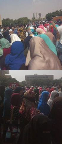 وشارك عدد كبير من الطالبات الذين حاملو لافتات تندد بالانقلاب الدموي ، وتطالب بالقصاص من قتلة الطلاب خلال العام الماضي ، متوعدين ادارة الجامعة بحراك ثوري شديد خلال هذا العام ، ردا علي تواطهم مع سلطات الانقلاب في محاربة الطلاب .