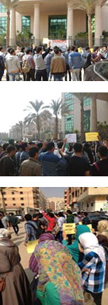 رفع المشاركون في المسيرة لافتات تطالب بالإفراج عن الطلاب ورددوا لافتات منها: "لن تركع أمة قائدها محمد"، "لسه الطالب هو الحل.. السيسي لازم يرحل".