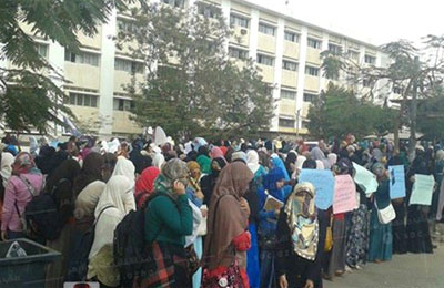 نظمت حركة "طالبات ضد الانقلاب" بجامعة الأزهر، مظاهرة حاشدة إنطلقت من أمام كافتيريا الجامعة، للتنديد بالفصل التعسفي من قبل إدارة الجامعة الانقلابية بحق زميلاتهن، وذلك في ذكري اليوم العالمي للطلاب.