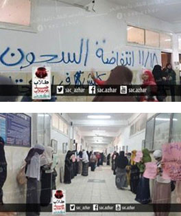 نظمت طالبات كلية الدراسات الانسانيه جامعة الازهر، بالقاهره وقفة احتجاجية، اليوم داخل أروقة الكلية احتجاجًا على اعتقال الطالبات وخطفهن واخفائهن قسريًا.
