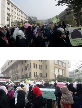 وطالبت المشاركات في المسيرة بطرد ميلشيات الانقلاب خارج أسوار الجامعه ووقف حملات اعتقال البنات الممنهجة والإفراج عن الطالبات الأزهريات بسجون العسكر.