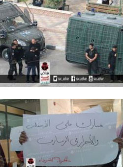 كانت مليشيات الانقلاب قد اقتحمت جامعة الأزهر فرع البنات عدة مرات اليوم بعد تنظيم الطالبات عدة فعاليات.