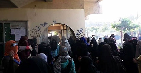 نظمت طالبات ضد الانقلاب بجامعة الأزهر مسيرة حاشده انطلقت من أمام الكافتريا، ظهر اليوم، مرددين هتافات "الشعب يريد إسقاط النظام".
