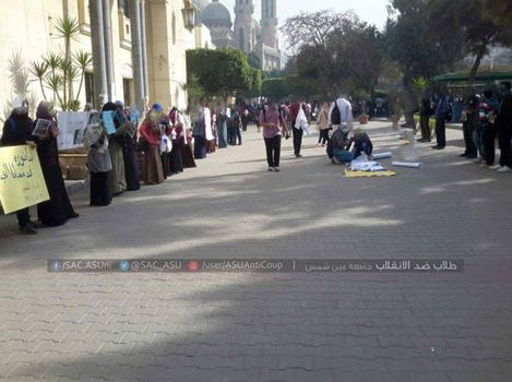 نظم طلاب كلية الطب بجامعة عين شمس فعالية حاشدة انطلقت من أمام مبنى الكلية اختتموها بوقفة أمام إدارة الجامعة تضمنت معرضا للصور ، تنديداً بحكم البراءة بحق المخلوع مبارك وحاشيته .