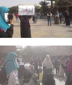 نظمت طالبات جامعة حلوان فريزينج بعنوان "الحكم للثوار" أمام ساحة رابعة العدوية " المطعم المركزى سابقا " تنديدًا بأحكام قضاء الانقلاب ببراءة المخلوع والعادلي ومعاونيه وأكدن رفضهن لهذه الاحكام المسيسة وأن الحكم للثوار فقط وأن اهداف الثورة ستتحقق حتى اسقاط الانقلاب .