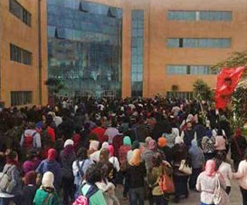 ويحاصر مئات الطلاب الآن داخل الألمانية GUC مكتب الانقلابي رئيس الجامعة أشرف منصور في مبني C.