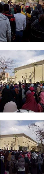 انطلقت مسيرة حاشدة لطلاب ضد الانقلاب بجامعة القاهرة من أمام المكتبة المركزية تنديدا بالحكم العسكري للبلاد واعتقال الطلاب وفصلهم .