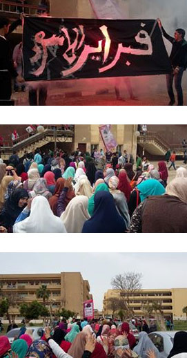 هتف الطلاب: "هاتوا اخواتنا من الزنازين الطلاب مش مجرمين ، الداخلية كلاب مسعورة.. قتلوا شباب بتشجع كورة ، الحرية قبل العيش.. يسقط يسقط حكم الجيش".