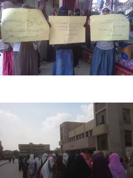 وطالبن برجوع المفصولات من الحامعة والإفراج عن زميلاتهن داخل سجون الانقلاب.