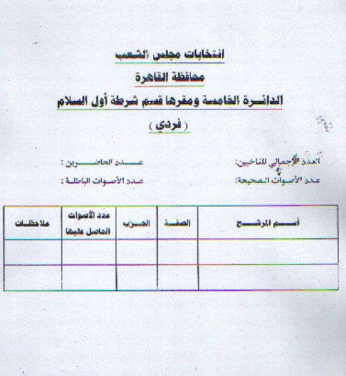 صورة من الكشف الرسمي توضح عدم انتهاء الفرز