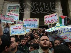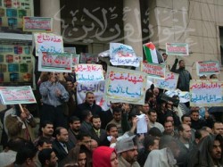 المحامون يرفعون شعارات تندد بتجويع الشعب الفلسطيني